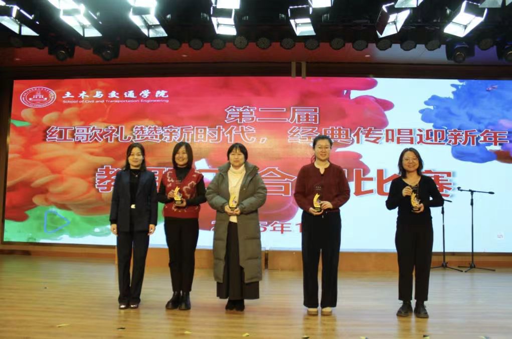 为增进教职工相互了解,促进团队建设,弘扬爱国主义精神,丰富职工文化生活。1月14日下午,学院组织开展了土木与交通学院第二届“红歌礼赞新时代,经典传唱迎新年”教工合唱比赛。