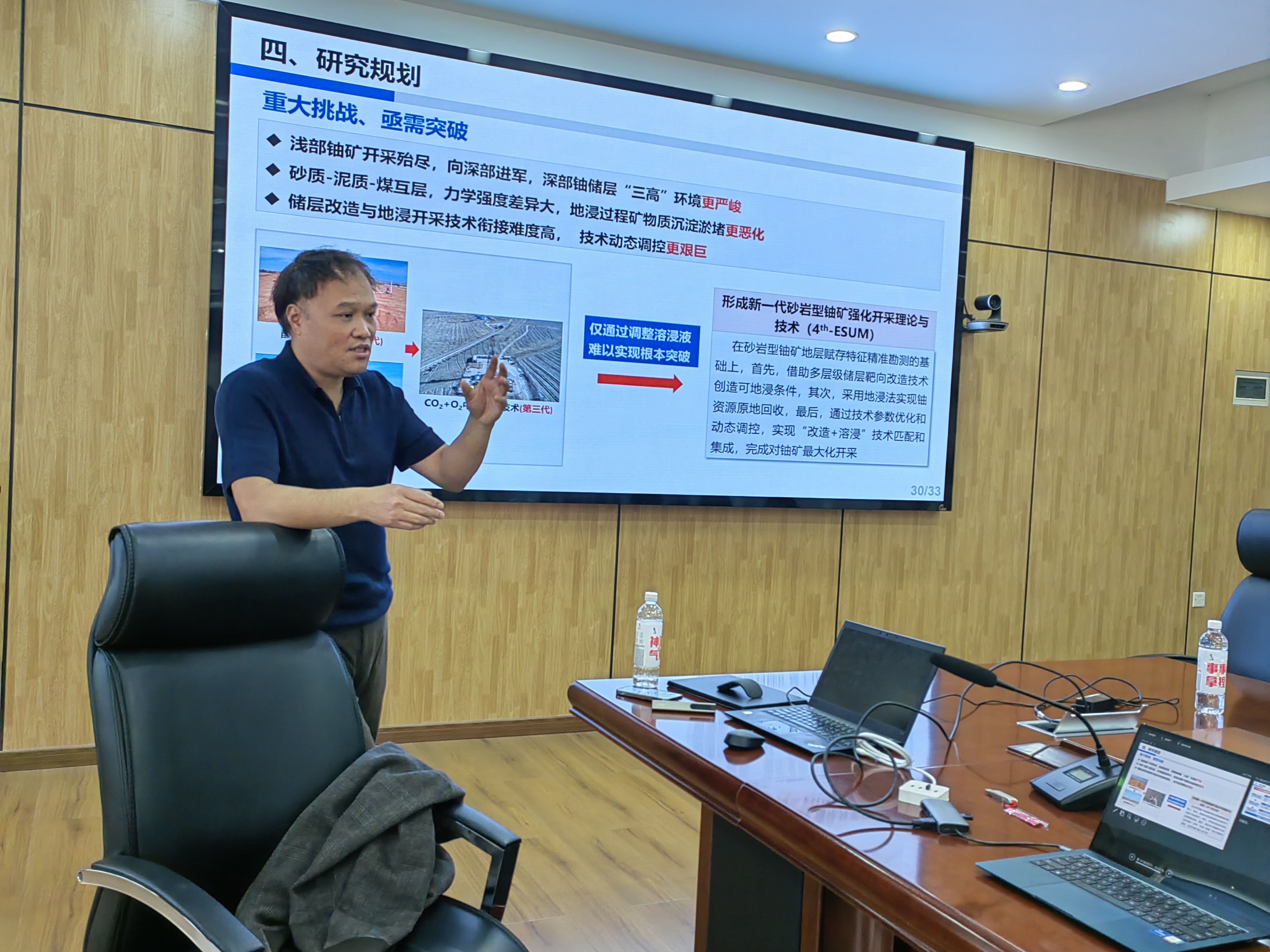 王伟教授在报告中指出,我国70%以上的砂岩型铀矿具有低渗透特性,导致地浸开采面临“难注、难抽、高成本、低采收率”等重大技术瓶颈。针对这一难题,王教授团队创新性地提出了无临空面深层岩体爆破增渗方法,系统揭示了低渗透砂岩型铀矿的爆破增渗机理,并构建了完整的理论模型。在此基础上,研究团队进一步开发了“选区-改造-监测-评价”一体化技术体系,并在国内外首次成功开展了铀矿爆破增渗现场中试试验,显著提升了储层渗透性,取得了突出的经济社会效益。