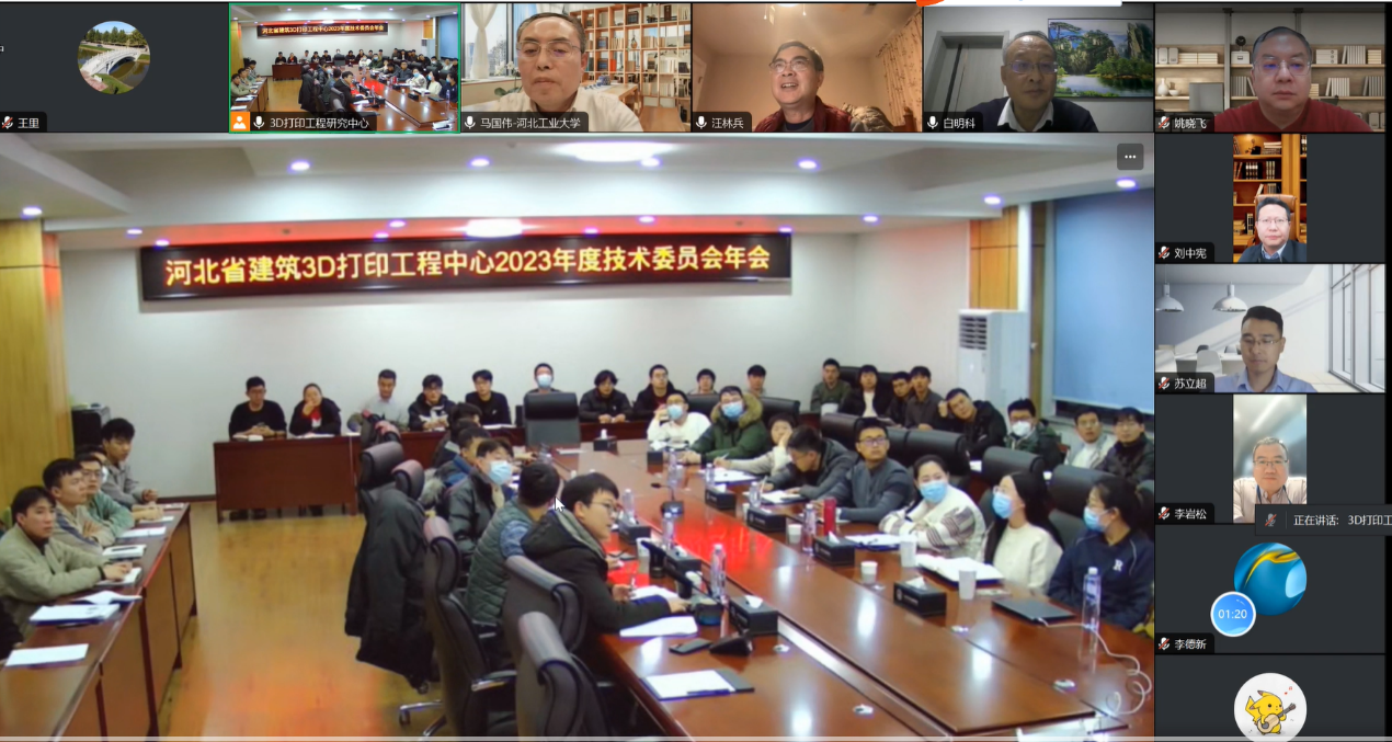 智能建造作为新一代信息技术和工程建造的有机融合,是当前国际最前沿的热点问题之一,亦是实现我国建筑业高质量发展的重要依托。建筑3D打印河北省工程研究中心依托河北工业大学建设,并与河北建工集团和邢台路桥建设总公司共建。为提升工程中心建设质量,精准定位研究方向和水平,实现工程中心高质高速发展。2023年12月26日,建筑3D打印河北省工程研究中心(以下简称“工程中心”)第一届工程技术委员会第四次会议采用线上线下相结合方式成功召开。